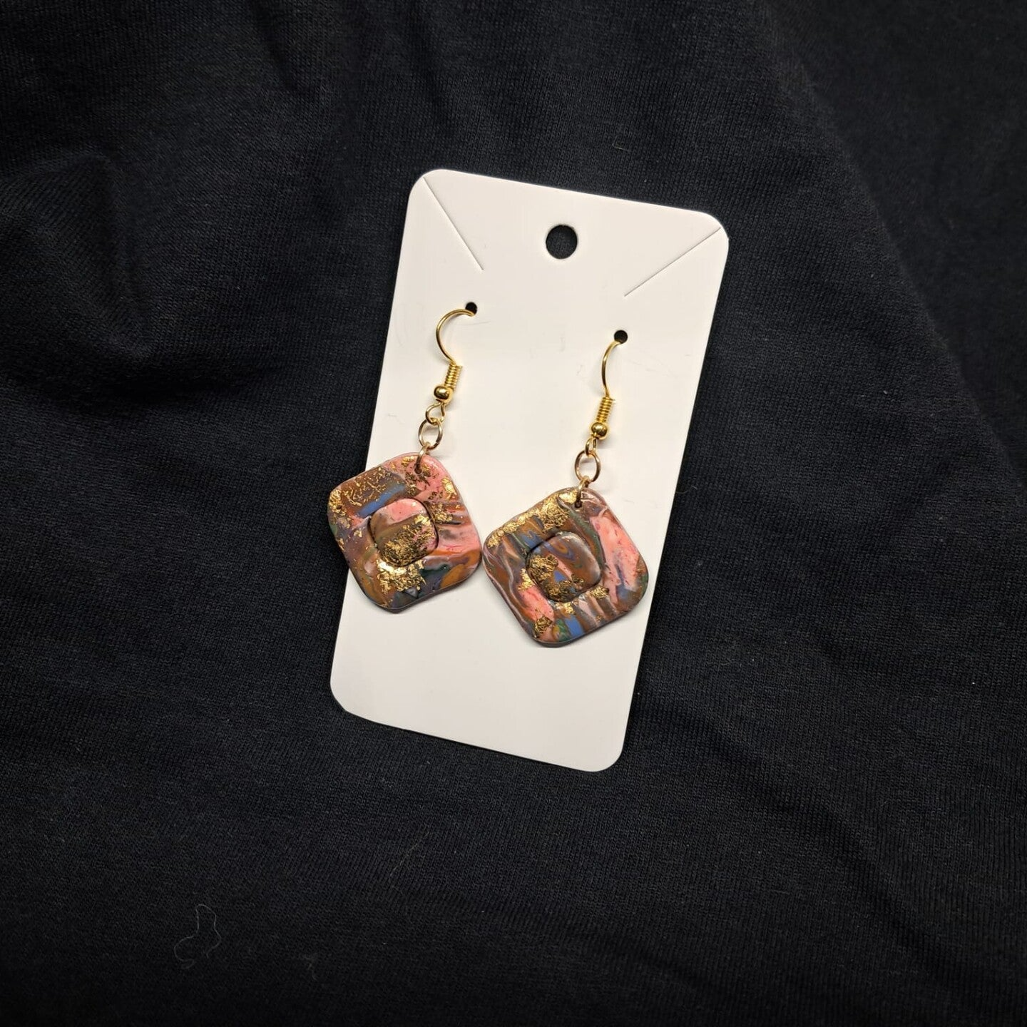 Oorbellen vierkant marmer effect met goud (13)